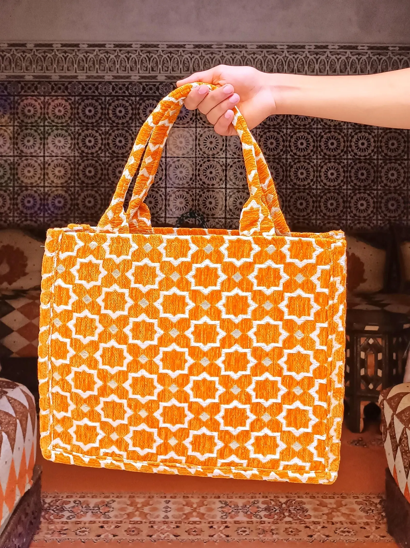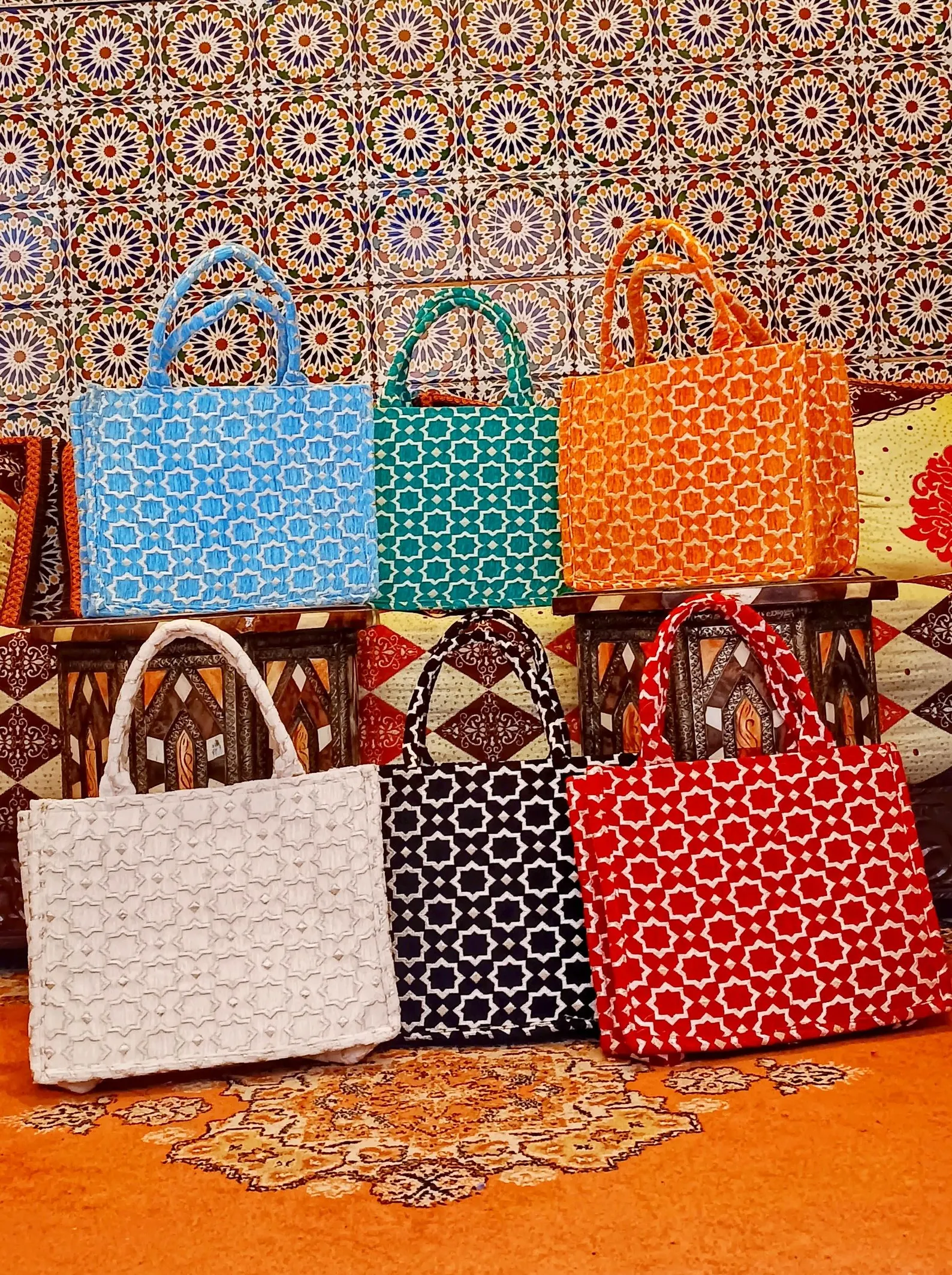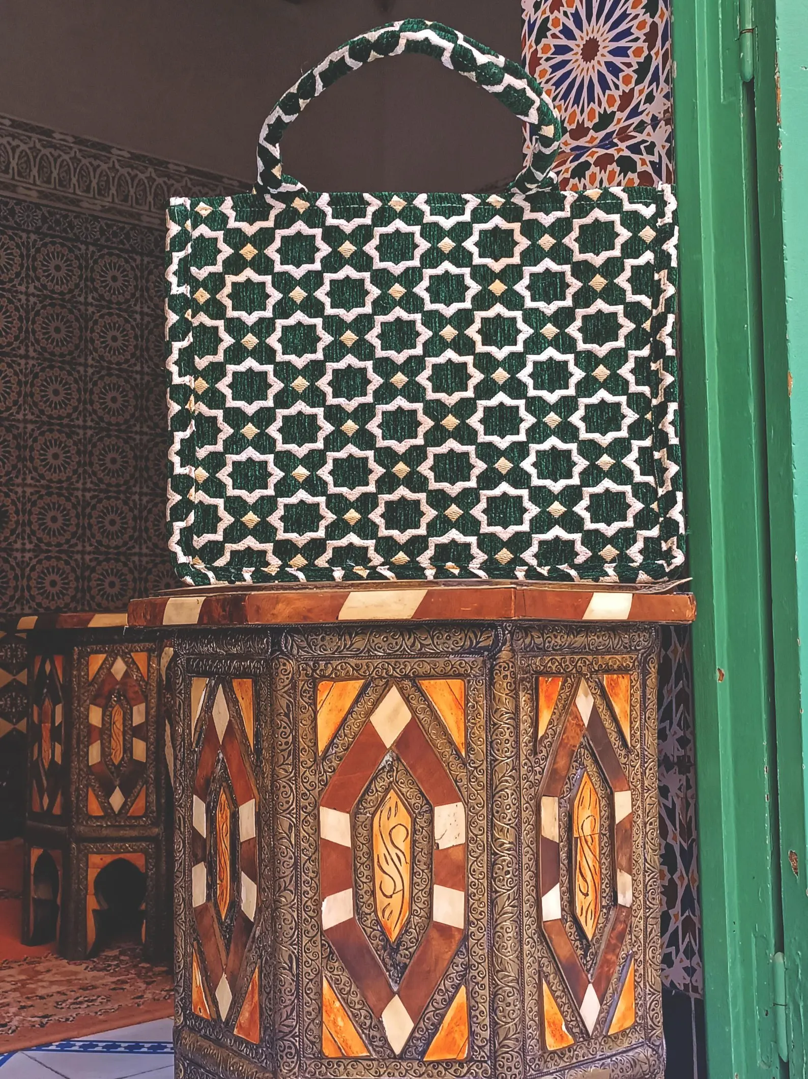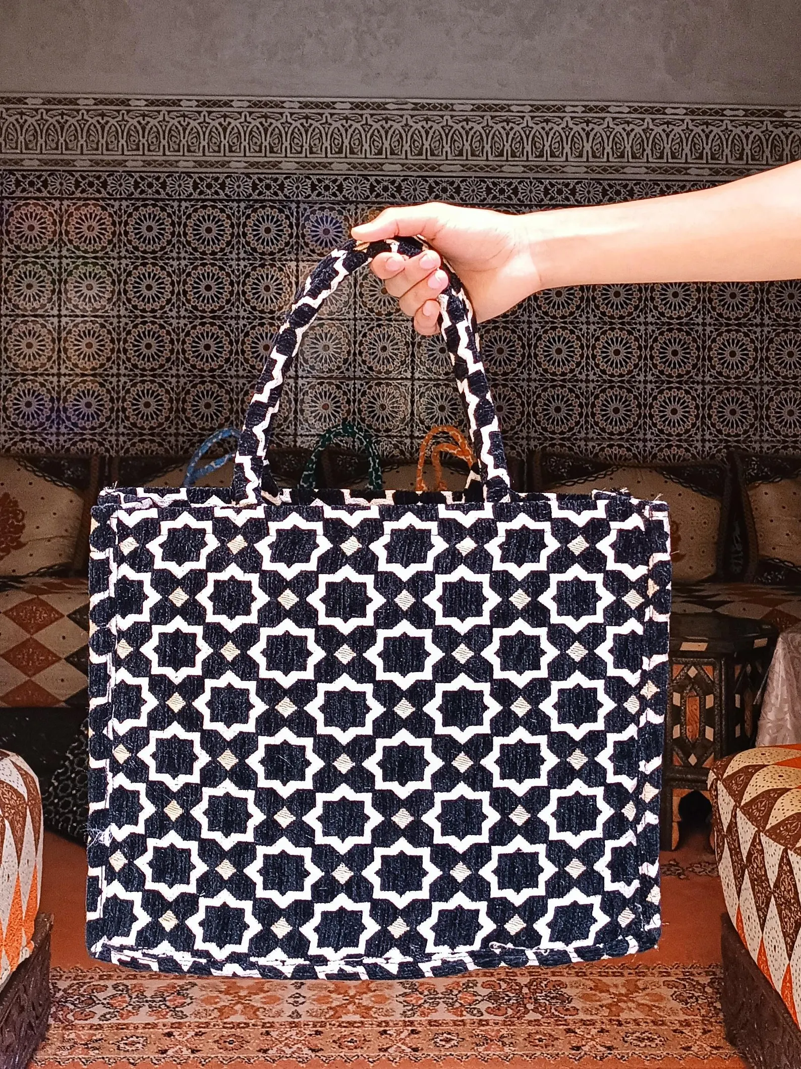 Handmade Moroccan Tote Bag: Zellij Tile Design, Eco-Friendly
